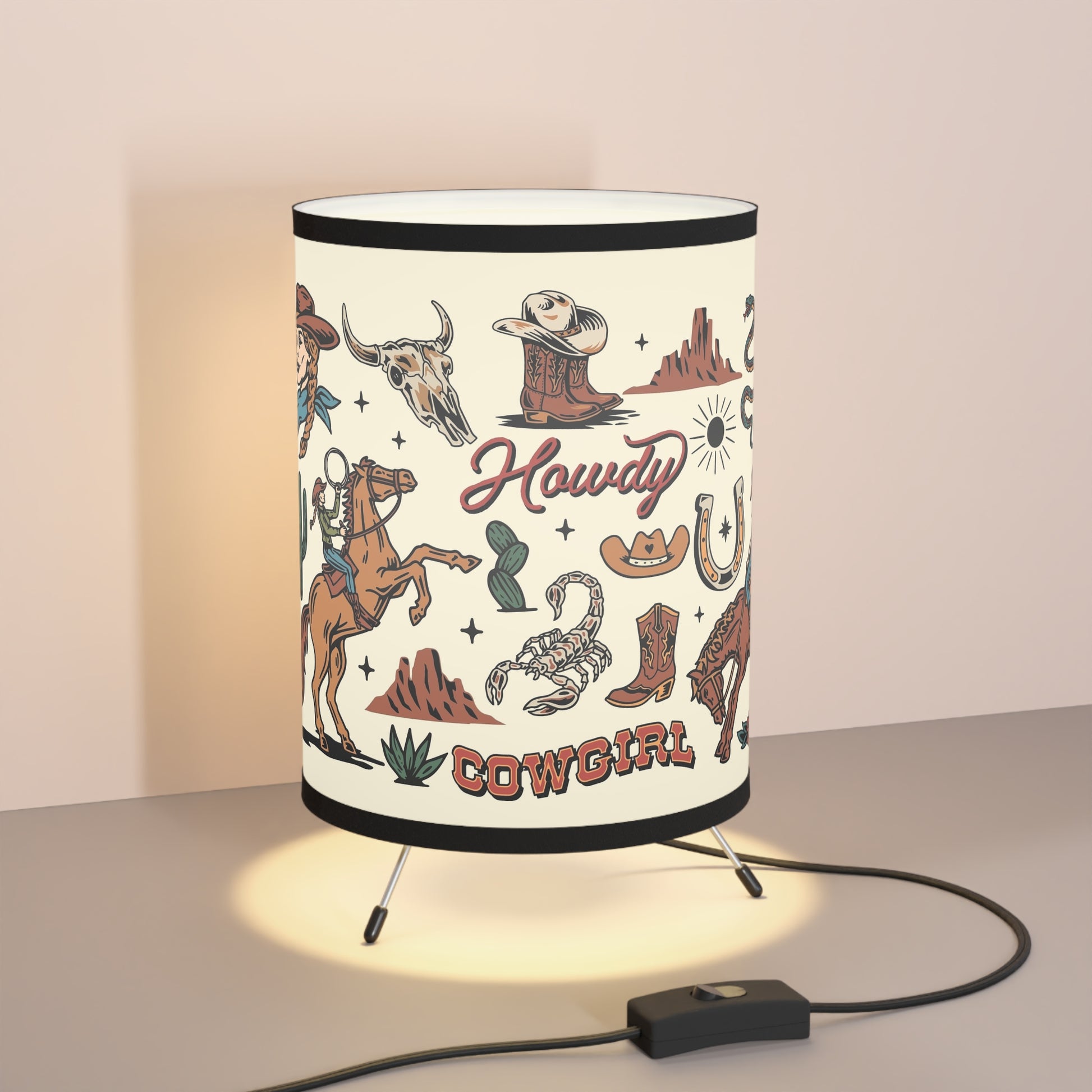 Cowgirl Tripod Lamp with High-Res Printed Shade - Rustic Decor for Home