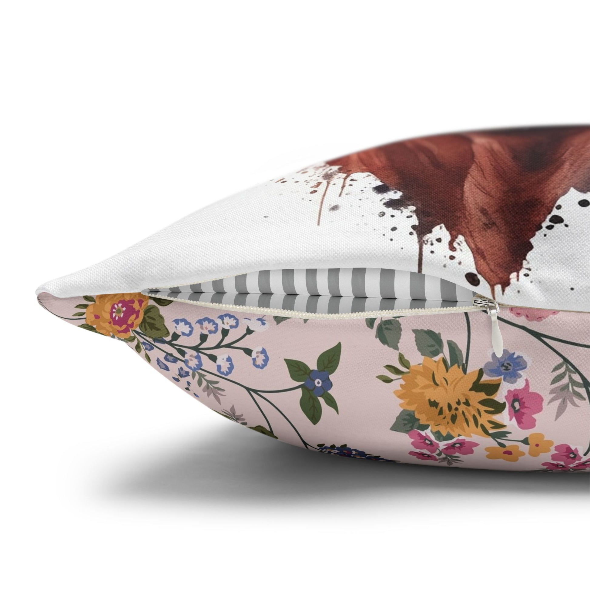 Floral Cow Pillowcase, Boho Farmhouse Decor, Country Living Accent, Cozy Home Gift, Rustic Animal Pillow Cover