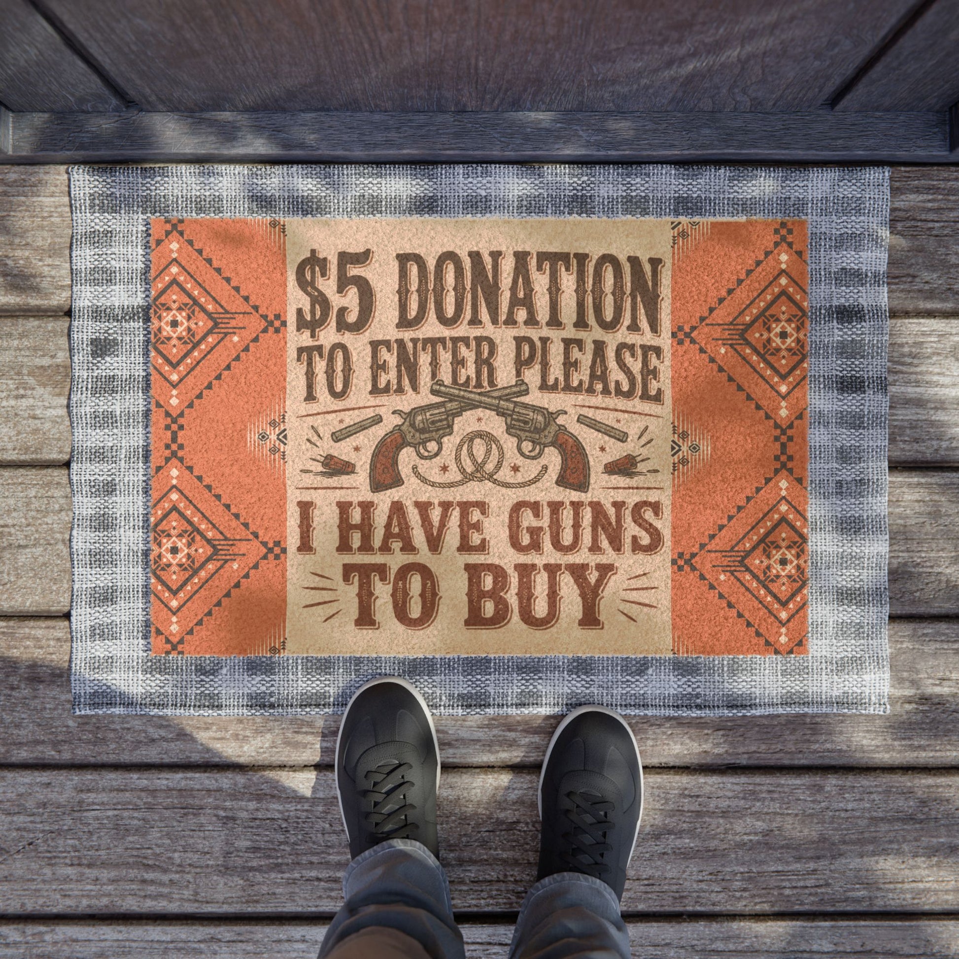 Funny Gun-Themed Doormat - Great for Gun Lovers, Entryway Decor, Home Welcome Mat, Unique Housewarming Gift, 5 Donation Humor Mat
