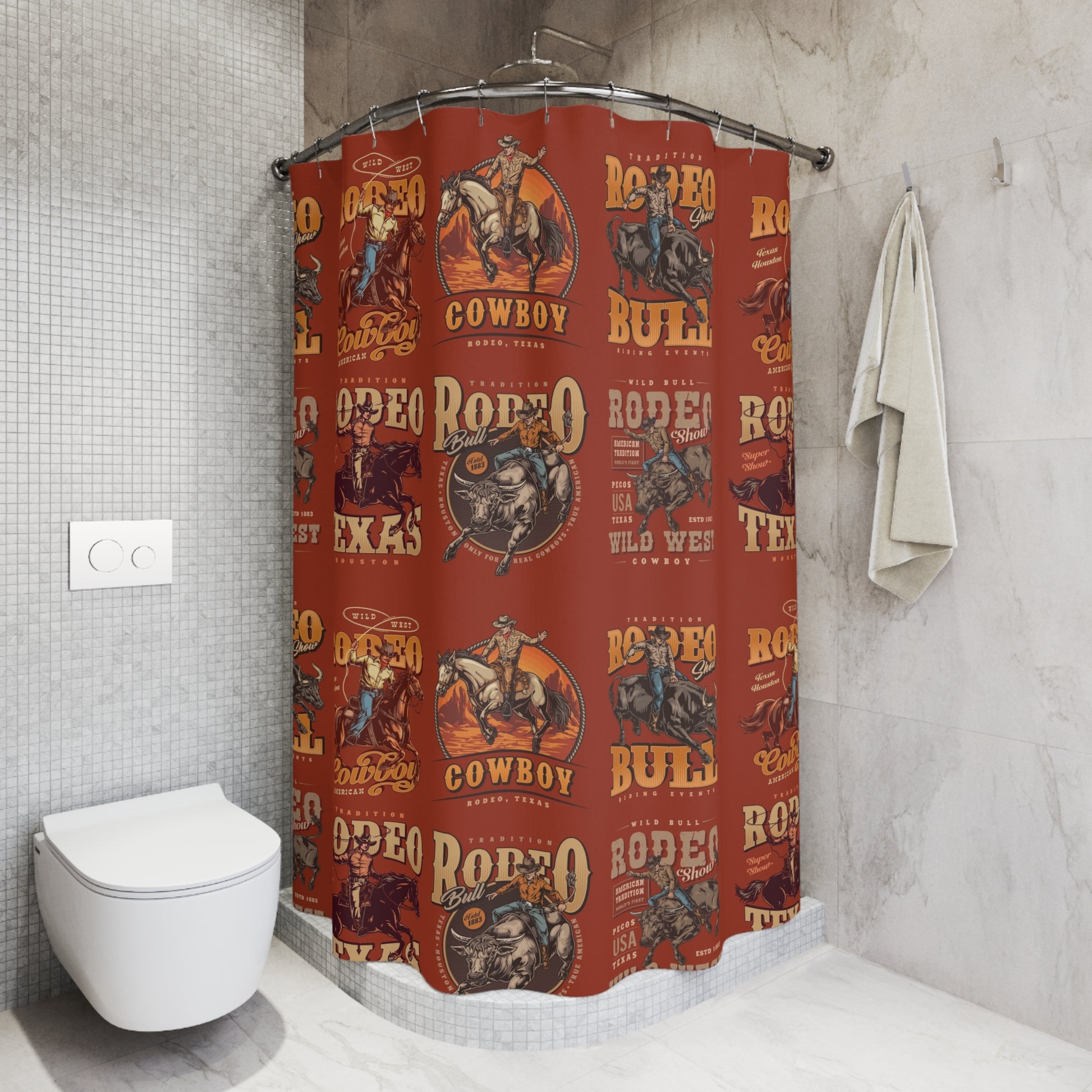 Transform your bathroom into a vibrant space with this eye-catching shower curtain that encapsulates the spirit of the Wild West. The bold, retro design features classic rodeo-themed graphics that add a unique flair to your decor, making each shower feel like an adventure. Perfect for cowboy enthusiasts and anyone looking to add a touch of Americana to their home. Ideal for use in guest bathrooms or master suites—this shower curtain is a great conversation starter! This product is perfect for housewarmings, birthdays, or any occasion that calls for a fun and functional gift. Create a relaxing and whimsical atmosphere every day!