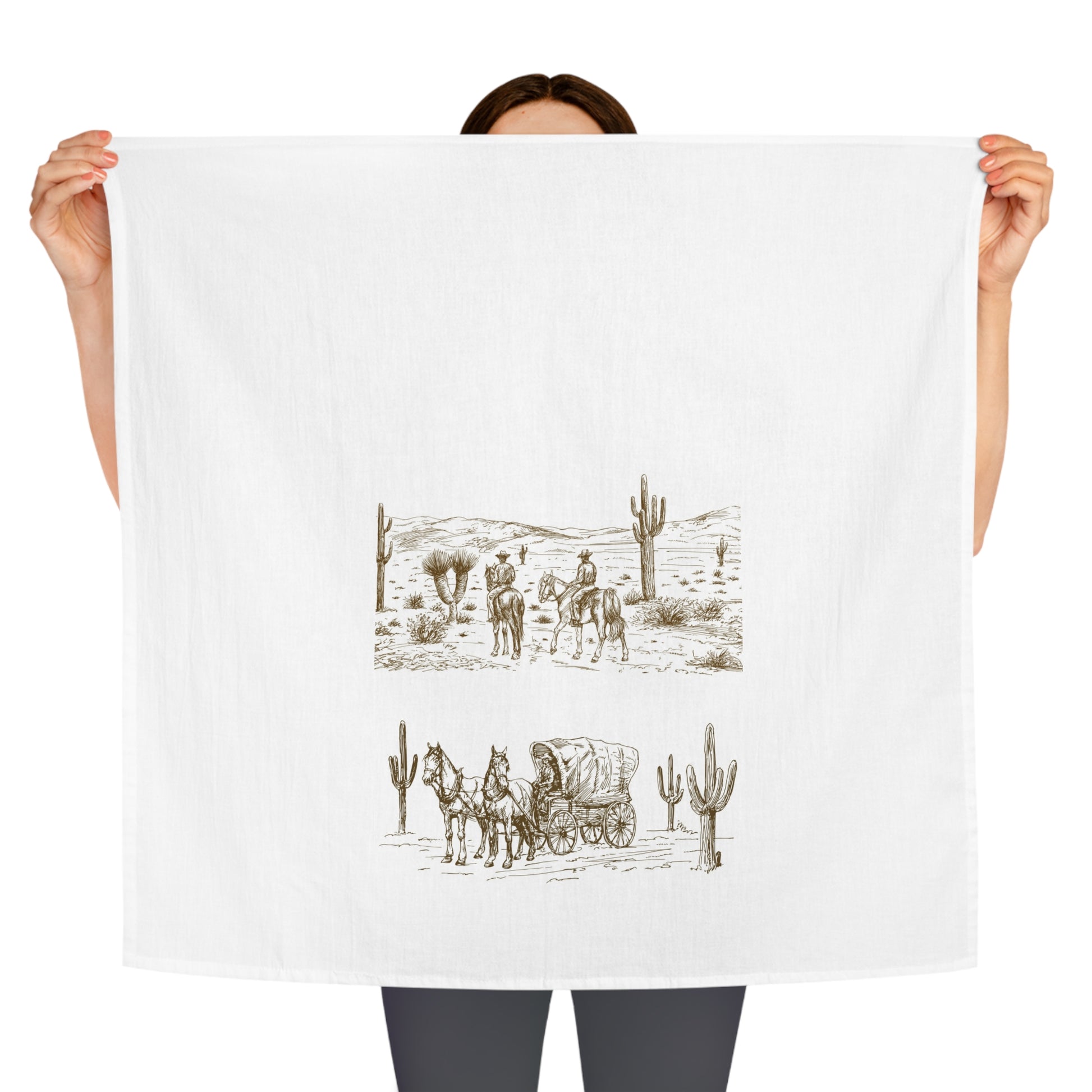 Rustic Western Tea Towel - Vintage Cowboy & Wagon Design