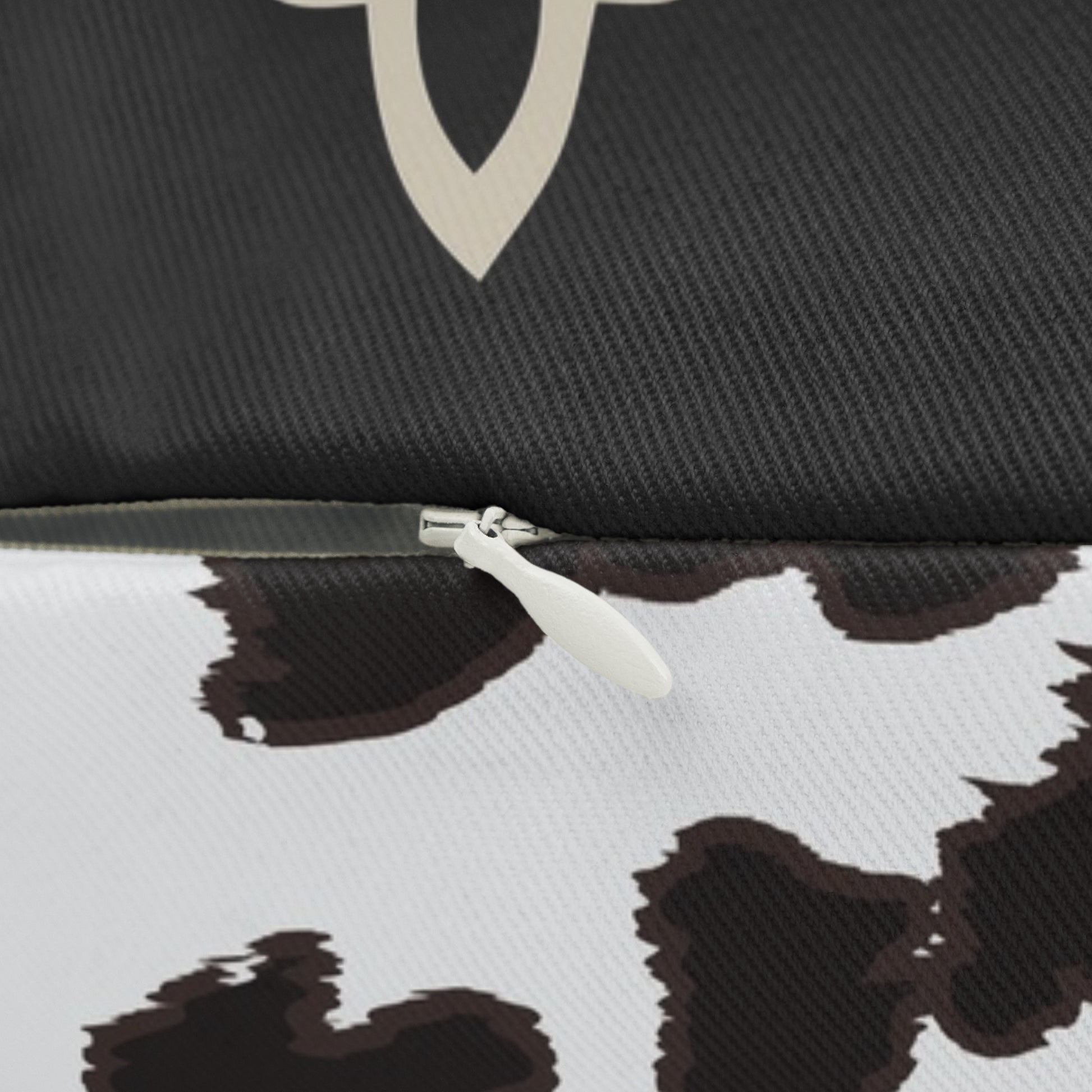 A rugged, stylish lumbar pillow that brings a bit of rodeo spirit into everyday spaces. The front shows bold, distressed lettering that reads “This Ain’t My First Rodeo,” framed by subtle ornamental flourishes and set against a deep charcoal background. The reverse features a high-contrast black-and-white cowhide pattern that adds playful texture and farmhouse flair. Lightly structured and built to hold its shape, this pillow slips into a neutral couch, pickup bench seat, or country-bedroom vignette with effortless attitude. It’s comfortable to lean against during long drives, late-night TV marathons, or while swapping stories around a fire—an understated reminder of confidence and lived-in experience that complements rustic, western, and eclectic interiors.