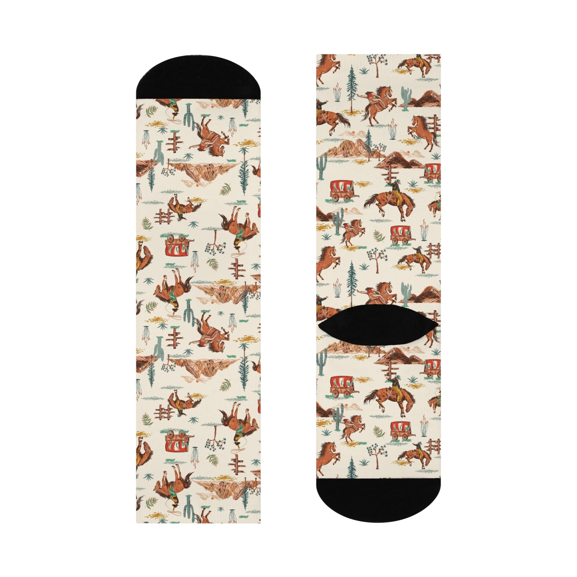 Vintage Western Adventure Cushioned Crew Socks - Perfect for Outdoors, Gifts, Camping, Festivals, Riding