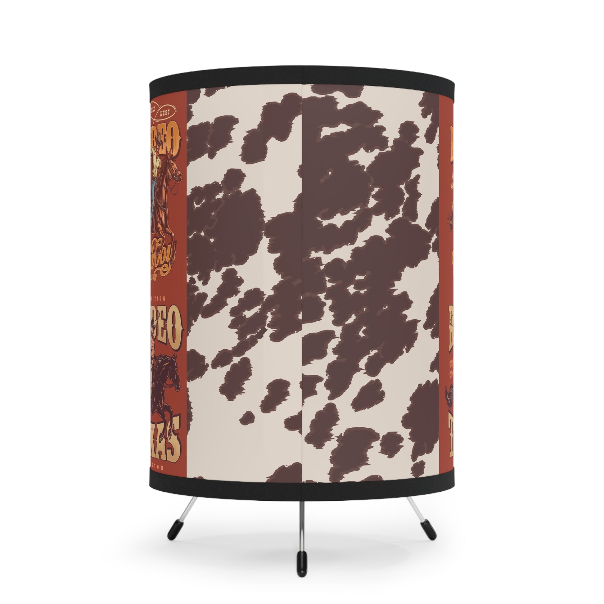 Illuminate your space with this vibrant Tripod Lamp, designed to bring a rustic and cozy ambiance to any room. Featuring high-resolution prints of cowboy and rodeo themes, this lamp not only provides warm lighting but also serves as a statement piece in your décor. Its unique and colorful fabric-shaded design adds character to living rooms, bedrooms, or offices. Ideal for lovers of Western culture, country music fans, or anyone looking to inject some fun into their home interior. Perfect for holidays and gatherings, this lamp can brighten up birthday parties, rustic-themed events, or family get-togethers.